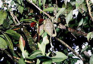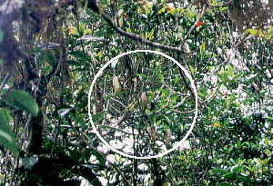 The upper pitchers of N. aristolochioides | The plants of N. aristolochioides are climbing high in the trees. |