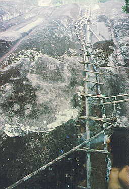 N. clipeata is one of the most endangered Nepenthes species in the world. These pictures show the only known location where it has been found growing. Please note that this species grows only directly on the wall of Mt. Kelam. | This is the only way up to N. clipeata. |