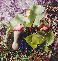 A cluster of some big N. clipeata plants growing on Mt. Kelam. | Single plant of N. clipeata. |