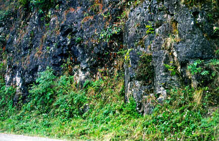 Typical habitat of Pinguicula moranensis; limestone-cliffs at the road-side, Chiapas, Mexico | Pinguicula moranensis, several plants, Chiapas, Mexico |