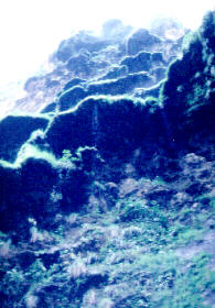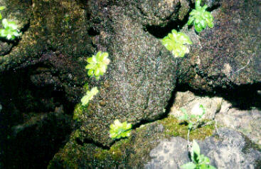 Habitat of Pinguicula spec., wet limestone-cliffs beyond waterfall, Chiapas, Mexico |