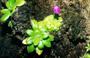 Pinguicula spec. (moranensis ?) in habitat, Chiapas, Mexico | Pinguicula spec., flowering plant |