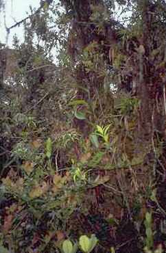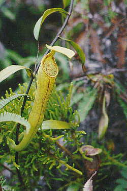 N. singalana with lower pitchers growing in mossy forest on Mt. Talakmau. | |