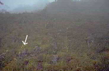 N. singalana (= N.diatas) from Mt. Bandahara, growing in open areas at 2615 m above sea level. | Habitat of N. singalana on Mt. Bandahara. Note the Nepenthes growing in this open area. |